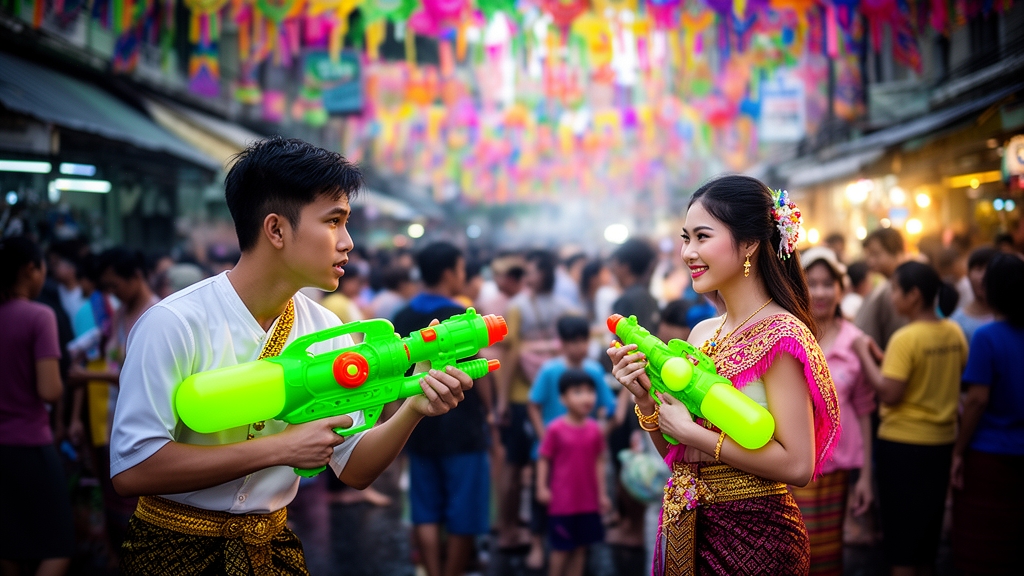 He hoisted his neon-green water gun, a beacon in the swirling crowd. It was their agreed-upon signal. Doubt gnawed at him. What if she was different in person? What if the online spark fizzled out? He almost missed her. A flash of neon green mirrored his own, held aloft by a woman with eyes that sparkled like the water spraying around them. Mei. Their eyes locked. The cacophony of the street seemed to fade, replaced by the sudden, electric awareness of each other.